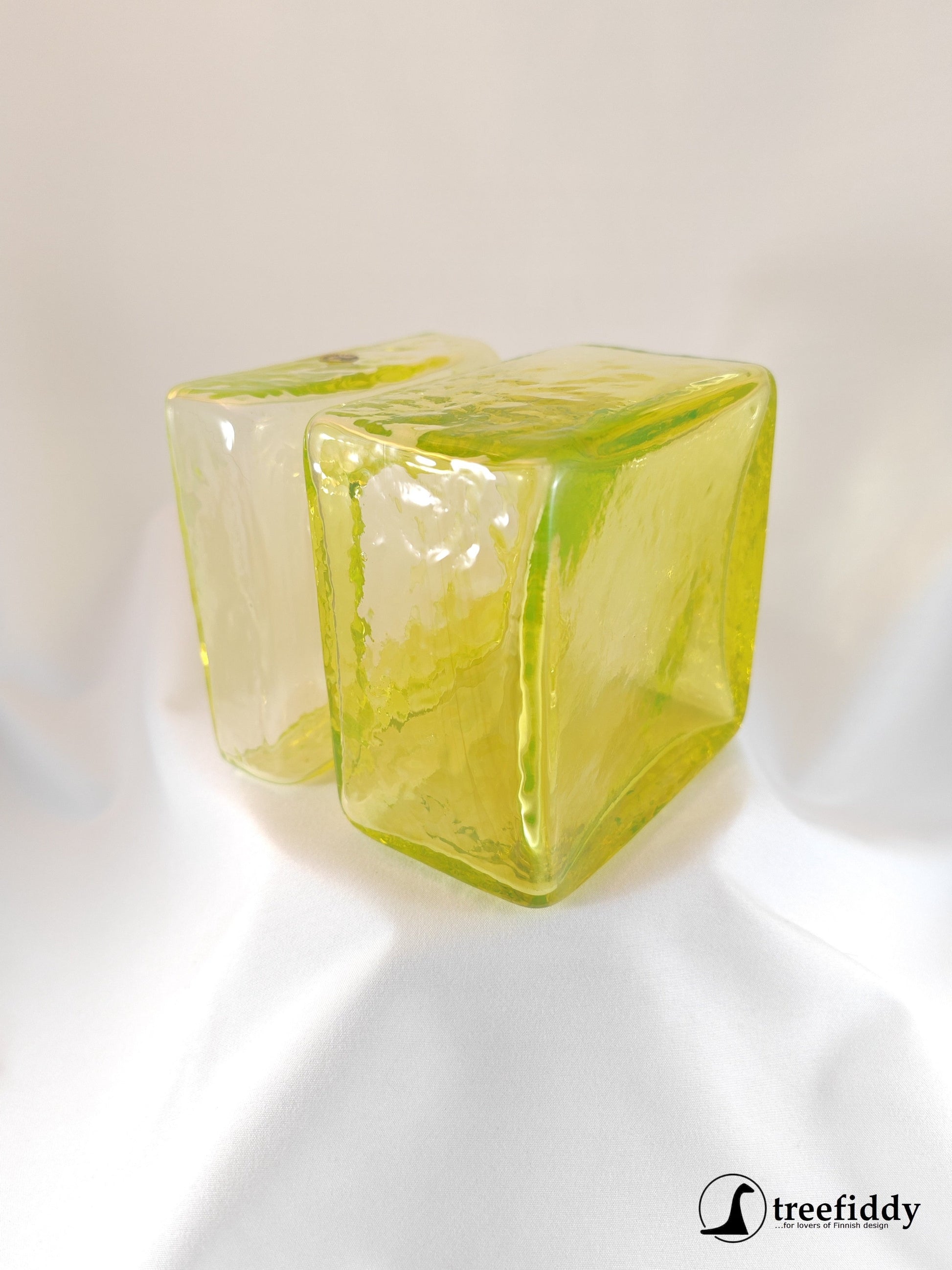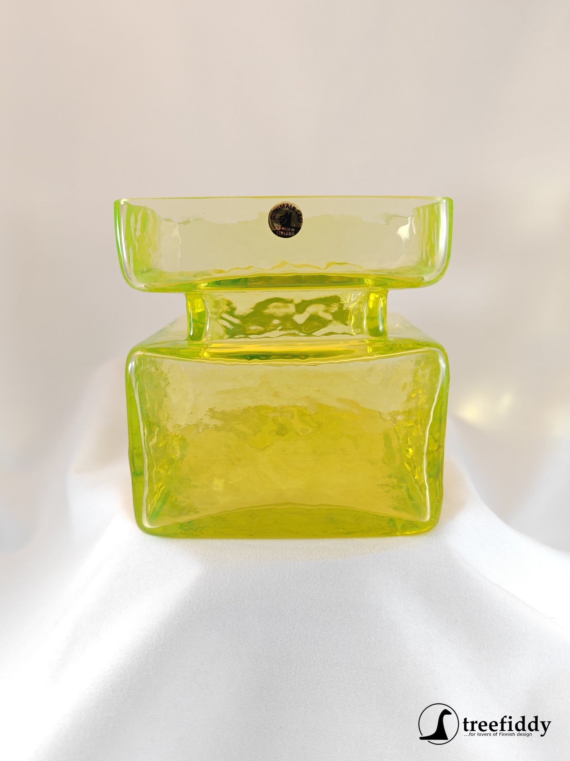 Helena Tynellin Pala maljakko keltainen/ uraanilasi, toiseksi isoin koko. Kunto moitteeton.